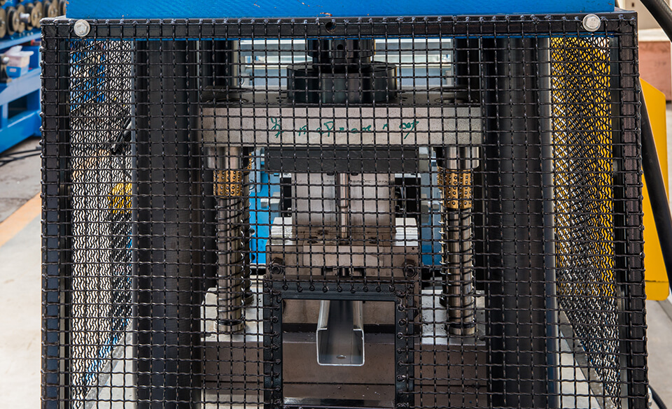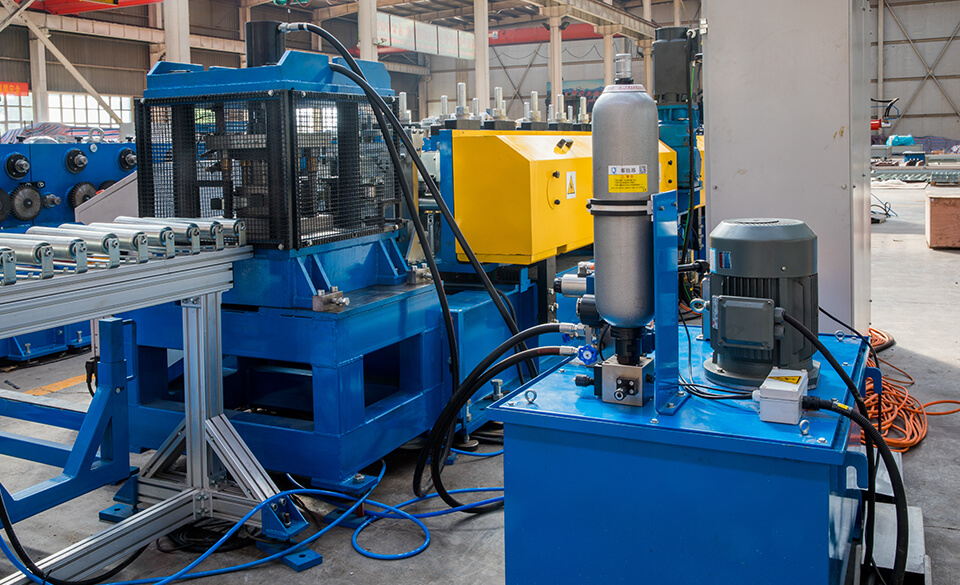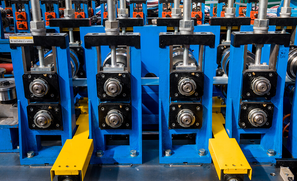 辊轴系统是精度的最终保证。辊架采用牌坊结构,下轧辊轴通过固定圆孔实现精准定位,上轧辊轴则采用滑槽定位,兼具刚性与调节自由度。所有辊轴均采用优质合金钢制造,经精密车削与热处理,确保极高的装配精度与抗扭强度。轴端安装高精度轴承,并整体坐落于牌坊的滑道内,最终通过精密丝杆机构对上下辊之间的间隙进行微米级微调,以适应不同厚度的原材料,保证产品截面形状的一致性,满足多样化货架系统的生产需求。